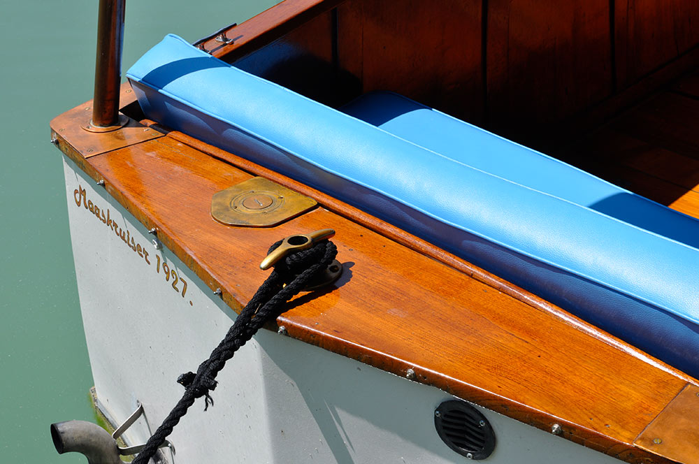 Construit en Hollande par M Eggers, le MaasKruiser (Vedette de la Meuse) a été conçu en 1927 pour être agile, convivial et rapide. Ces bateaux étaient très populaires chez la bourgeoisie Hollandaise dans la période 1920 à 1940. Le pont avant est rehaussé pour abriter un petit salon, une cuisine et des toilettes, la partie arrière se devant d’être ouverte et équipée d’un auvent.